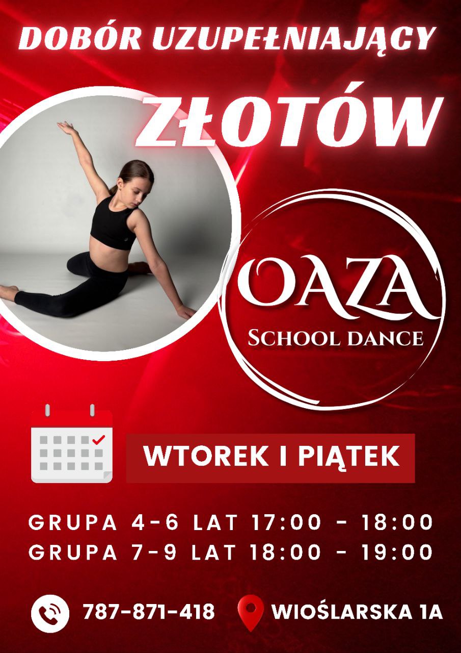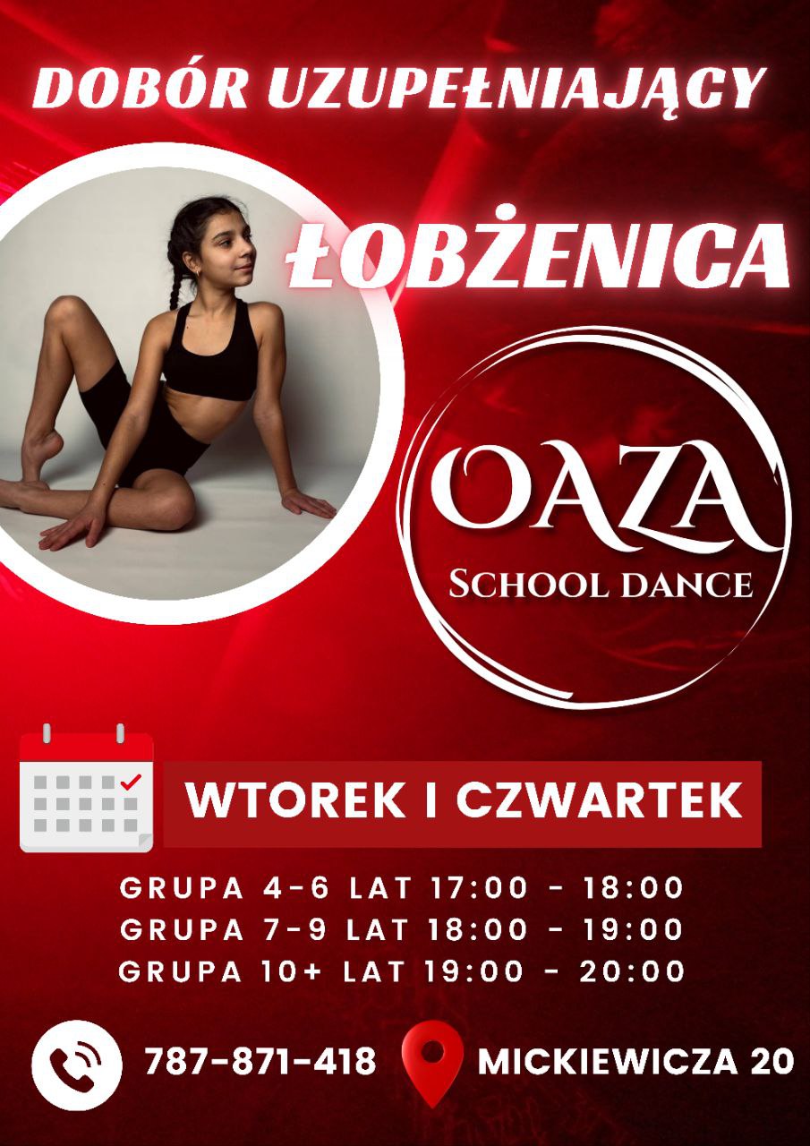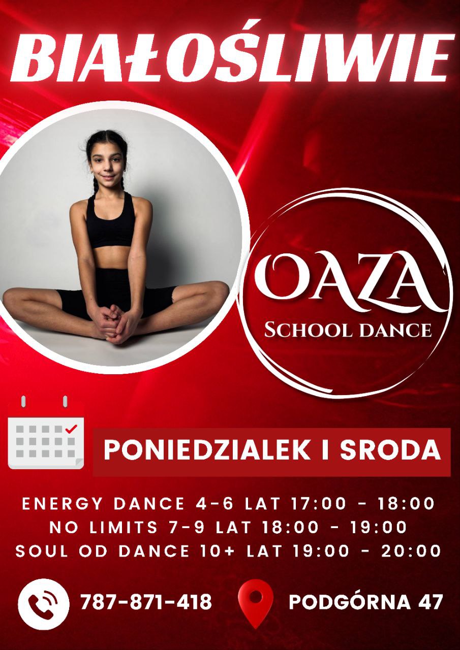 Szkoła Tańca OAZA powstała z miłości i pasji do tańca jej właścicieli – Michała i Poliny Potapov. Są to dyplomowani tancerze z Charkowa na Ukrainie. Zajęcia prowadzone są w dwóch kierunkach: taniec współczesny (dance mix, modern, contemporary) oraz akrobatyka (akrobatyka podstawowa).